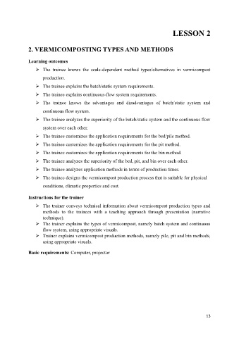 ➢ The trainee knows the scale-dependent method types/alternatives in vermicompost