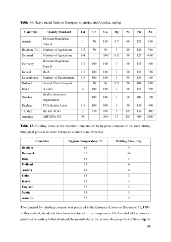 Table 14. Heavy metal limits in European countries and America, mg/kg