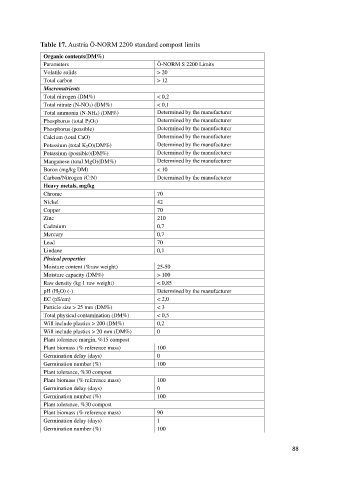 Table 17. Austria Ö-NORM 2200 standard compost limits