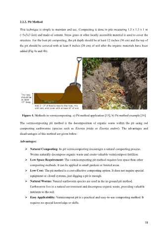 Figure 4. Methods in vermicomposting. a) Pit method application [15], b) Pit method example [16]