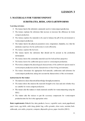 ➢ The trainee determines the appropriate bed materials, earthworms and substrates for