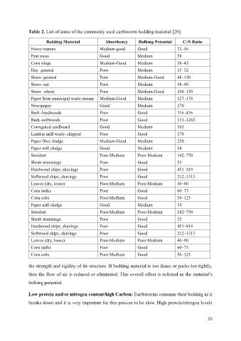 Table 2. List of some of the commonly used earthworm bedding material [20]