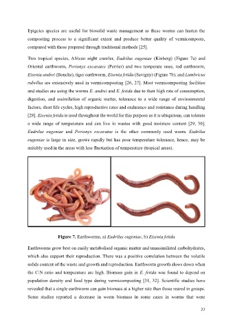 Figure 7. Earthworms, a) Eudrilus eugeniae, b) Eisenia fetida