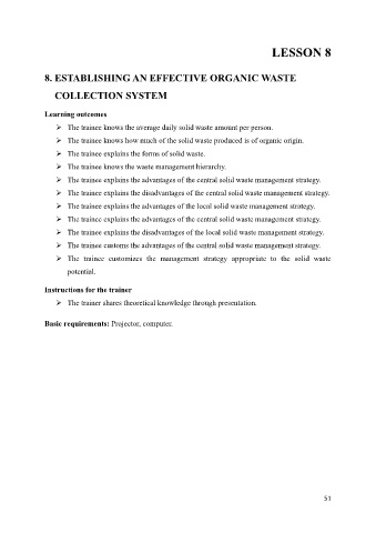 8. ESTABLISHING AN EFFECTIVE ORGANIC WASTE