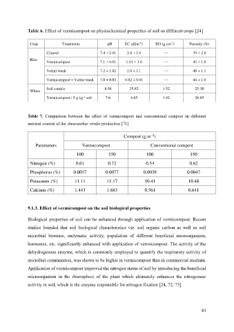 Table 6. Effect of vermicompost on physiochemical properties of soil on different crops [24]