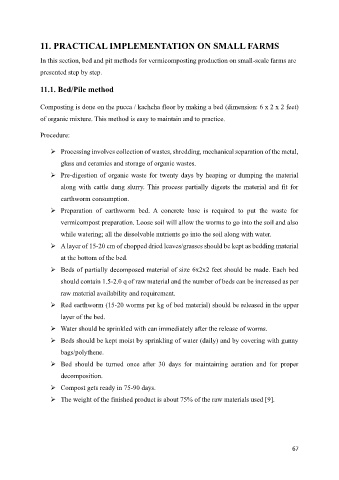 ➢ Beds of partially decomposed material of size 6x2x2 feet should be made. Each bed