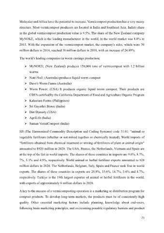 Malaysia) and Africa have the potential to increase. Vermicompost production has a very messy
