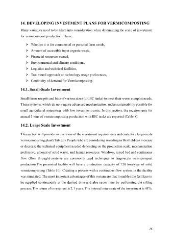 14. DEVELOPING INVESTMENT PLANS FOR VERMICOMPOSTING