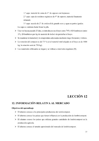 15 y 20 lombrices por kg de material de lecho) sin perturbar el hoyo.