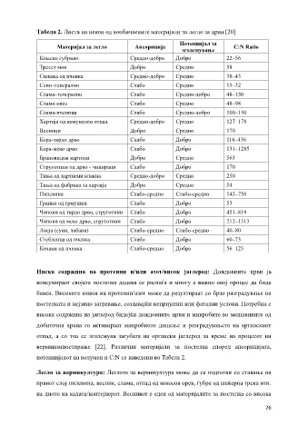 вермикомпостирање [22]. Различни материјали за постелка според апсорпцијата,