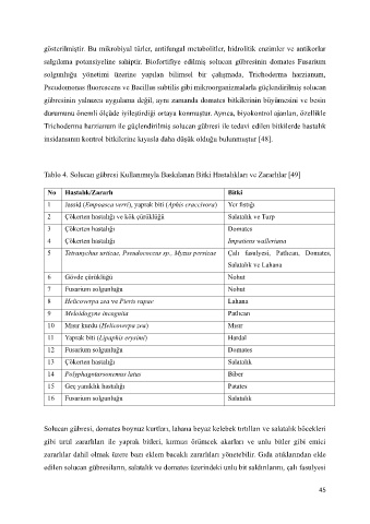 Tablo 4. Solucan gübresi Kullanımıyla Baskılanan Bitki Hastalıkları ve Zararlılar [49]
